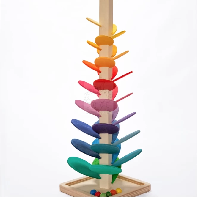 This is high-quality wooden tree tower. It is so attractive and pleasant to look at and fun to play with. Just drop the marbles from the top to hear a wonderful array of sounds as each marble descends down the colorful handmade tree.