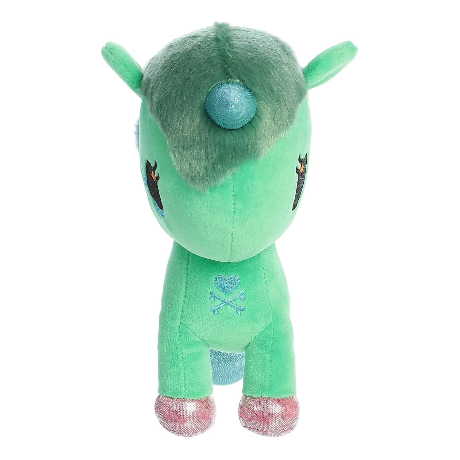 Prepare to be captivated by Isla’s mesmerizing appearance. With a vivacious blue tailfin that shimmers under the light, a vibrant green unicorn body that radiates pure unicorn charm, and a majestic blue unicorn horn that is the epitome of unicorn power, this plush is a kaleidoscope of colors that will make your eyes dance with joy.