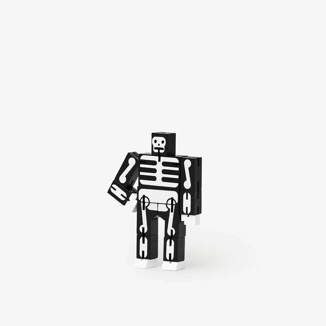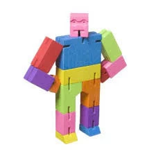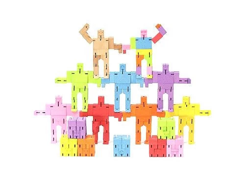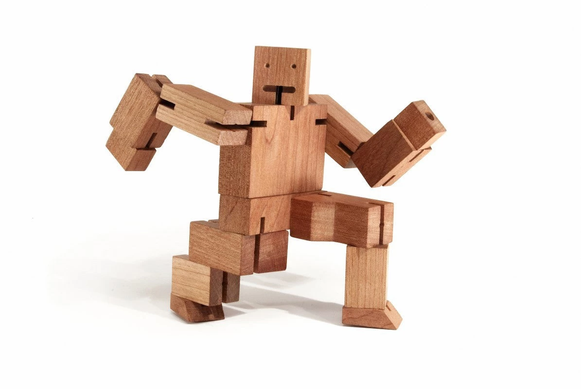 Cubebots’s powerful hardwood frame can hold many poses, and his elastic-band muscles and durable wood limbs make him impervious to breakage. When it’s time for him to rest, he folds into a perfect cube. An enduring classic that will withstand generations of play.
