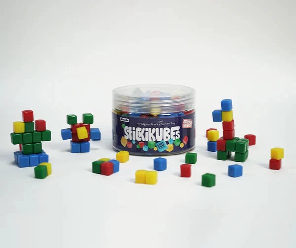 Made from a customized polymer without adhesive added. Stickikubes stick to anything (except fabric), non-toxic and safe for kids. Kids can make their own custom 2D and 3D designs, decorate cups and bowls, glasses, furniture, car interior, and anything else in the house, office, or classroom! Four colors, easy to handle!